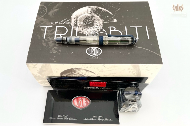 Aurora 88 Trilobiti Cobalt Blue is limited to 388 pieces worldwide and comes with an elegant case in black lacquered wood and a bottle of blue ink to match the fountain pen.