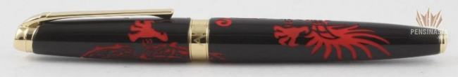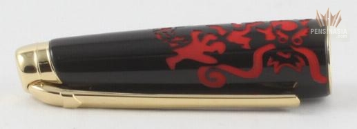 The body of the pen, carefully polished by hand then enveloped in soft black lacquer, is surrounded by the sinous form of the powerful red dragon. As guardian of all the Earth's riches, it seizes possession