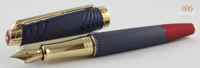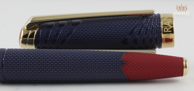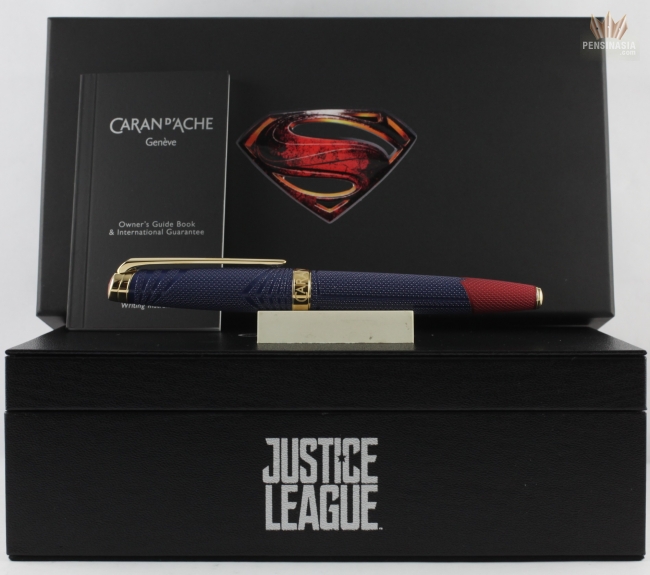 A Special Edition Non-Numbered Fountain Pen from Caran d'Ache for the Justice League movie, representing Superman(the man of steel). With his iconic red and blue costume, Superman uses his supernatural powers to fight evil. An intense blue satin lacquer on the body and cap of the pen recall Superman’s costume. The very end of the pen's barrel is highlighted by means of a dark red lacquer inspired by Superman’s cape and boots. The pen features a combination of engraving and a combination of lacquer with different colours in dense and satin finish. Cap button carrying the new Caran d’Ache identification (dark red lacquered hexagon).
