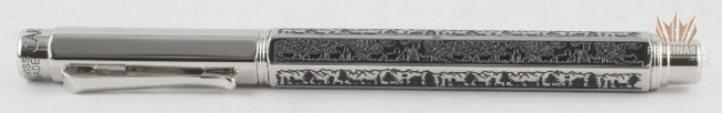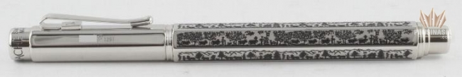 The drawing is engraved into the pen’s body and completed by hand with black laquer.
