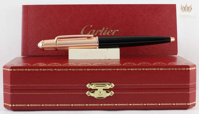 Cartier Diabolo Guilloche Black Body with Pink Gold Cap Ball Pen