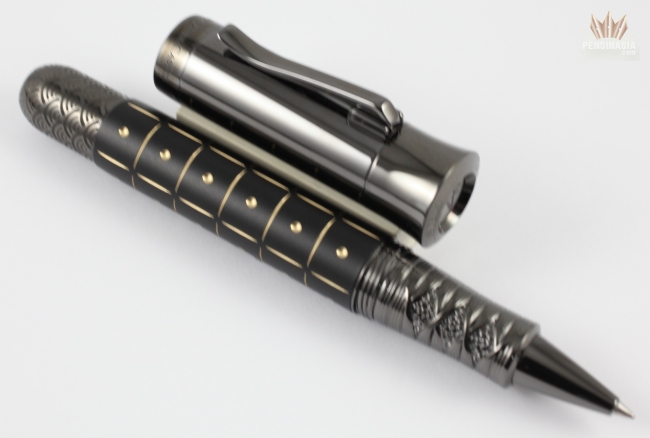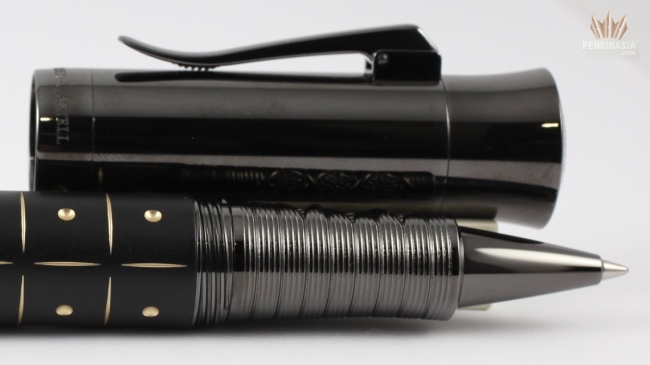 The caps and the grip are covered in an anthracite-grey PVD coating made from titanium. The roller ball pen is limited to 100 pieces.