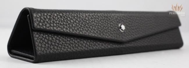 Montblanc Meisterstuck 1 Pen Pouch Foldable is crafted using the soft grained leather which gives a soft and natural feel. Compartment for 1 writing instrument the size of Meisterstück Classique or Le Grand. when the product is empty, it folds up for a very slim appearance; when it is fitted with a writing instrument, it unfolds into a unique triangular shape on the sides. The flap, which features the Montblanc emblem with a palladium-coated ring, closes with a hidden magnetic button.