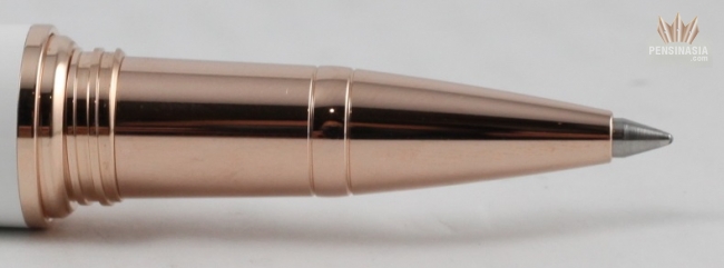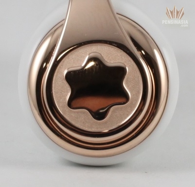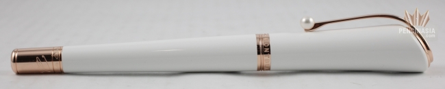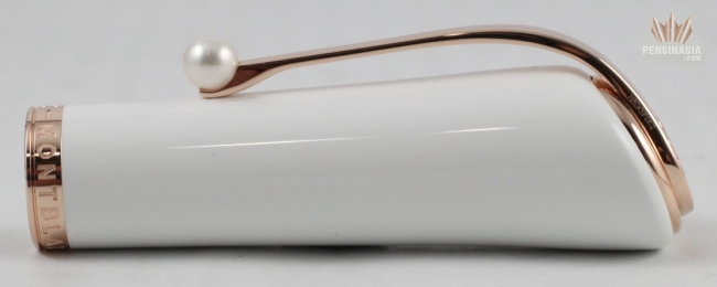 The pen design was inspired by the iconic Ferragamo four-inch high-heels reflecting her femininity and sensuality. This pen features a champagne-colored gold-coated clip with a pearl on the tip.