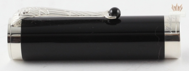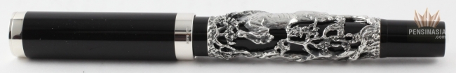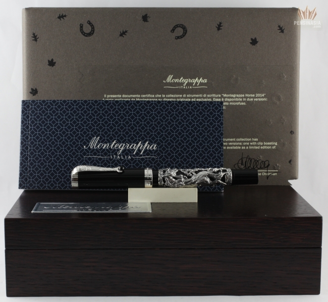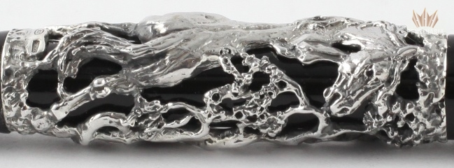 Montegrappa Horse 2014 is made in black resin and is available in two different versions. On one of the version, the cylindrical barrel is decorated with stunning die-cast overlays portray of a horse in a lifelike and lively stance in solid 18K gold or sterling silver. The cylindrical cap in black resin is fitted with a solid 18K gold or sterling silver trim, with Montegrappa's signature pocket rotating sphere clip.