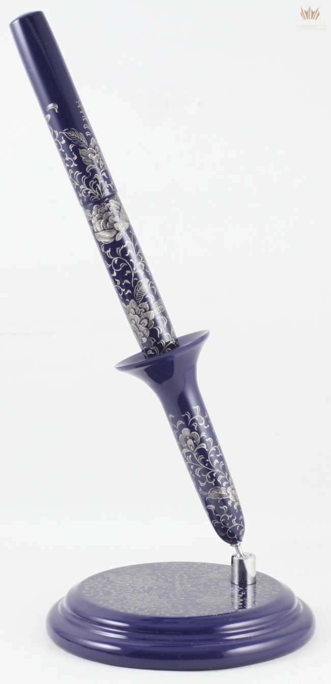 Nakaya Desk Pen Chinkin Platinum Housouge Fountain Pen with Desk pen stand