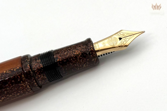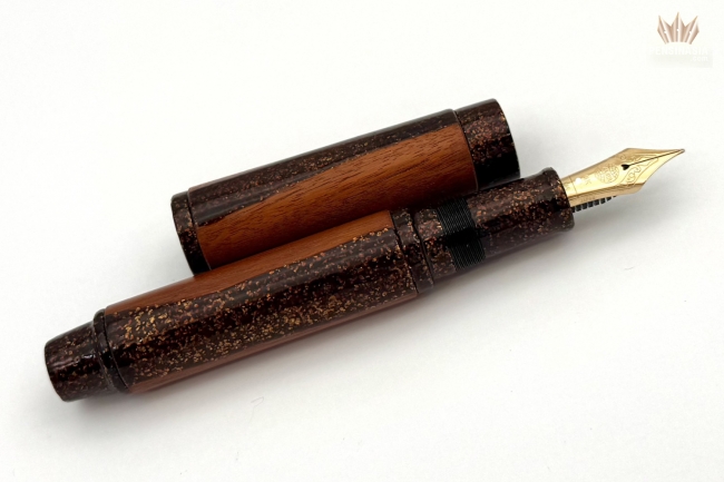 The wood is decorated with Urusih Nashiji technique. The Urushi Nashiji technique that creates a deep, warm tone reminiscent of amber wood, giving the pen a distinctive look.