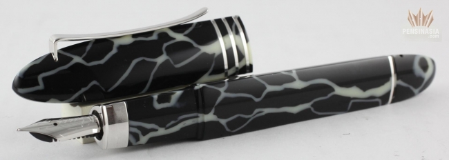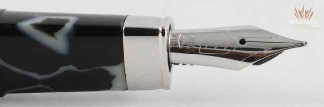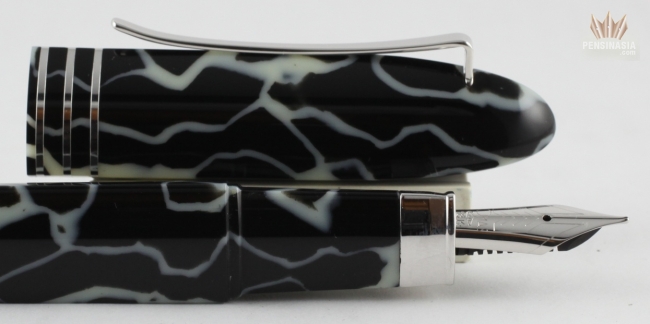 The OMAS 360 HT Silver Vintage Wild Celluloid Limited Edition fountain pen is triangular shape and unique finish. Swirls and lines of ivory weave a striking pattern. The ergonomic triangular shape provides an easier grip.