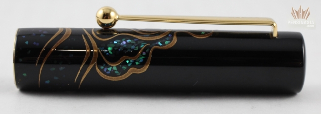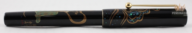 The fountain pen in Yukari size has a 18kt gold nib and is complemented by gold trim.