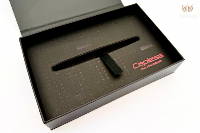 The pen is presented in a striking accentuated gift box in matte black and red, and is produced worldwide in a limited edition of 2,023 pens. Each box includes a historical timeline of the Vanishing Point series.
