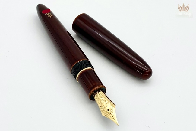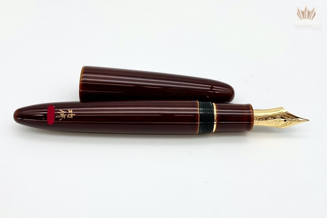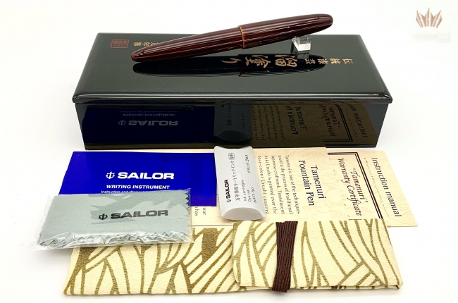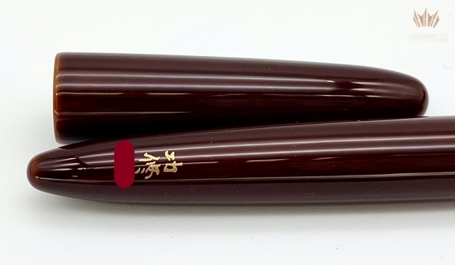 The pen is covered with a beautiful Urushi lacquer, applied by the skilled and talented Urushi master, Koushu Nishihara, and finished with a translucent suki-urushi,