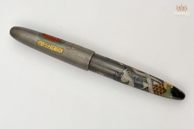 Inspired by the renowned Ukiyo-e masterpiece of Utagawa Kuniyoshi, this stunning pen features maki-e artwork depicting Tominomori Sukeemon-Masakata, one of the revered 47 Ako-Roshi samurai. The Ako-Roshi samurai were the main figures in the famous Ako Incident, known as Chushingura (The Treasury of Loyal Retainers).