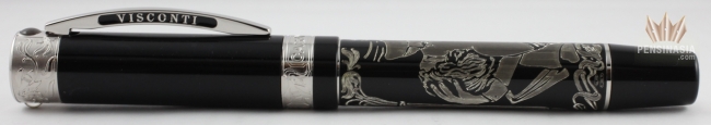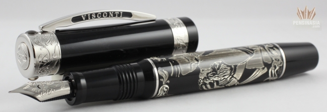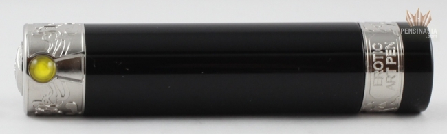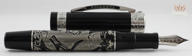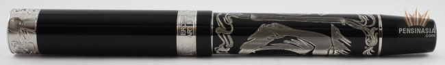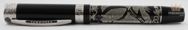 The Casanova is limited to 388 pens. Made of black resin with engraving in 925 sterling silver plus erotic painting. A power filling system with 23k 950 palladium dreamtouch nib.