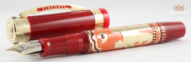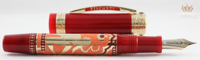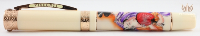Visconti introduces a collection of limited edition fountain pens devoted to erotic arts. Inspired by the pocket watch of the olden days with its covers concealed an erotic picture inside. Visconti created this pen which has barrel divides into two section which allows access to the mechanical parts and an erotic painting.The pen reflects the ancient art that was practiced on three different regions of the globe. The first is Casanova, exhibits the Italian way of love making highly practiced in high class society in late 18th and early 19th century. Second is Shunga, a sacred erotic art that was highly practiced in Japan. Lastly is the Kamasutra.